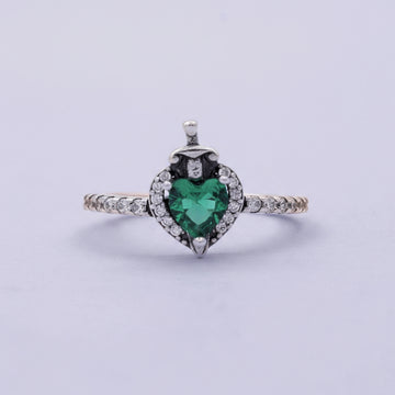 Anillo de Plata .925 Solitario Gota con Zirconias color Verde Esmeralda y Azul Zafiro mod. 1403