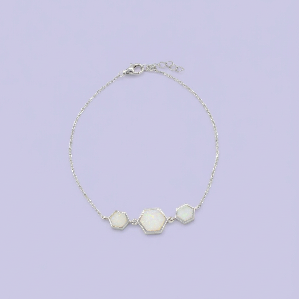 Pulsera de Plata .925 Diseño Hexagonal Incrustado de Ópalo mod. 1693