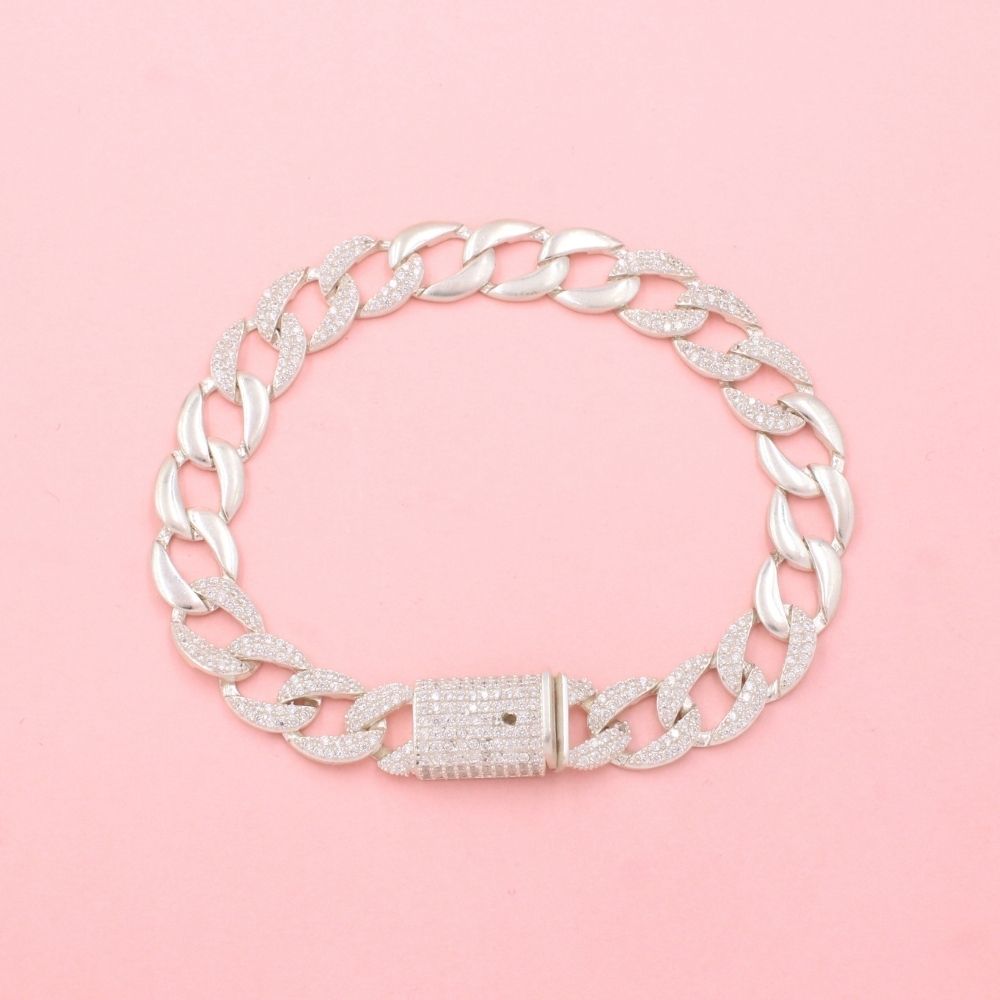 CARACTERÍSTICAS: Pulsera tejido barbado. Plata Ley .925. Largo: 20 cm. Ancho: 1 cm. Incrustación de...