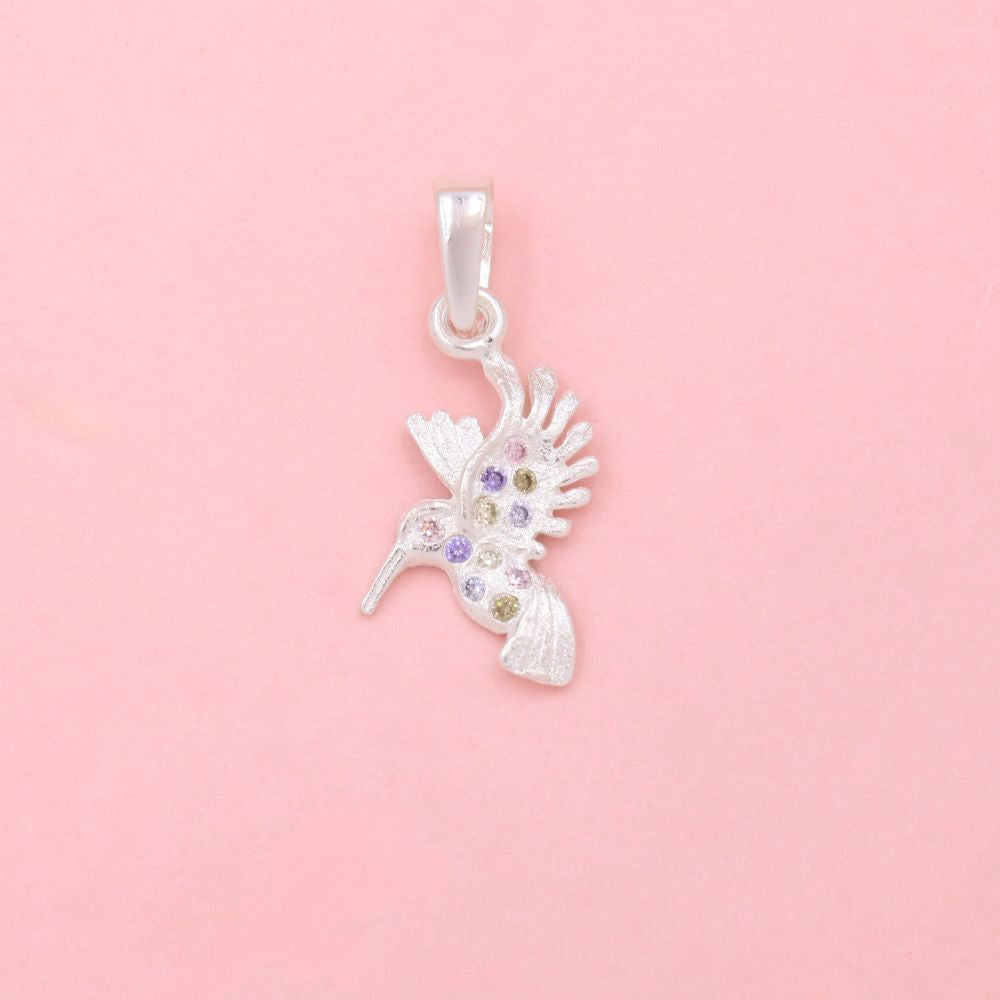 CARACTERÍSTICAS: Dije Colibrí con Piedras. Plata Ley .925. Largo: 2.8 cm. Ancho: 1.8 cm. con...