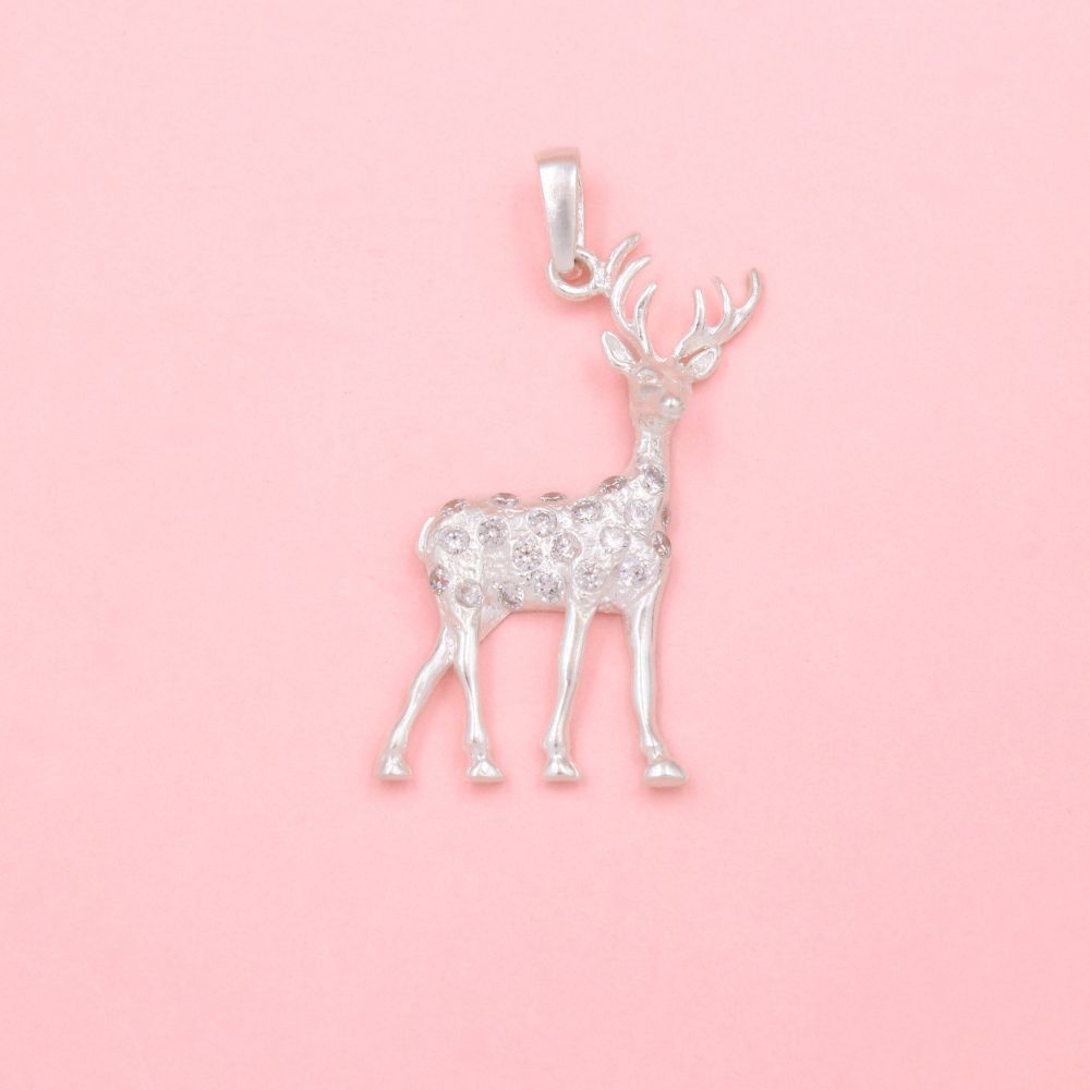 CARACTERÍSTICAS: Dije de Venado. Plata Ley .925. Largo: 4.5 cm. Ancho: 2.4 cm. con Zirconias....