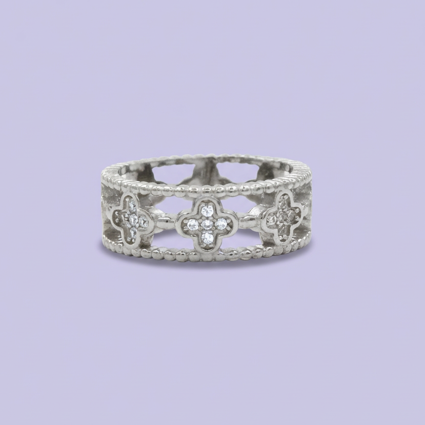 Anillo de Plata .925 con Diseño de Trébol Incrustado de Zirconias mod. 1835