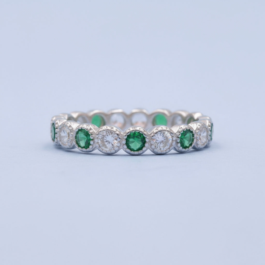 Anillo de Plata .925 Churumbela con Zirconias Color Azul Zafiro y Verde Esmeralda mod. 1363