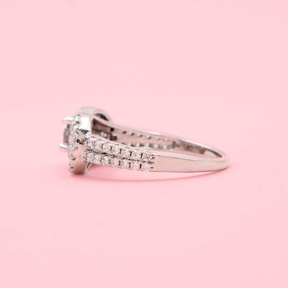 Anillo Solitario de Plata .925 Diseño de Lazo Detallado con Zirconias FInas mod. 1145