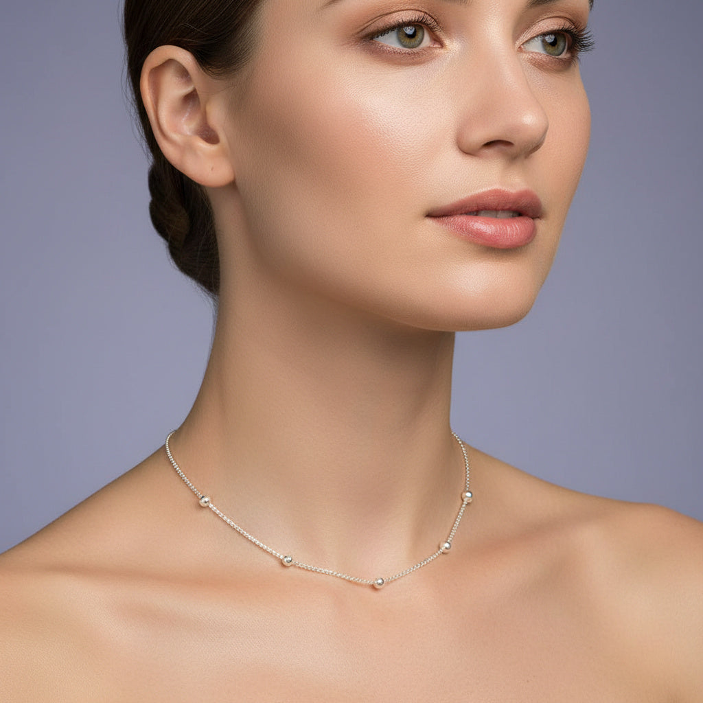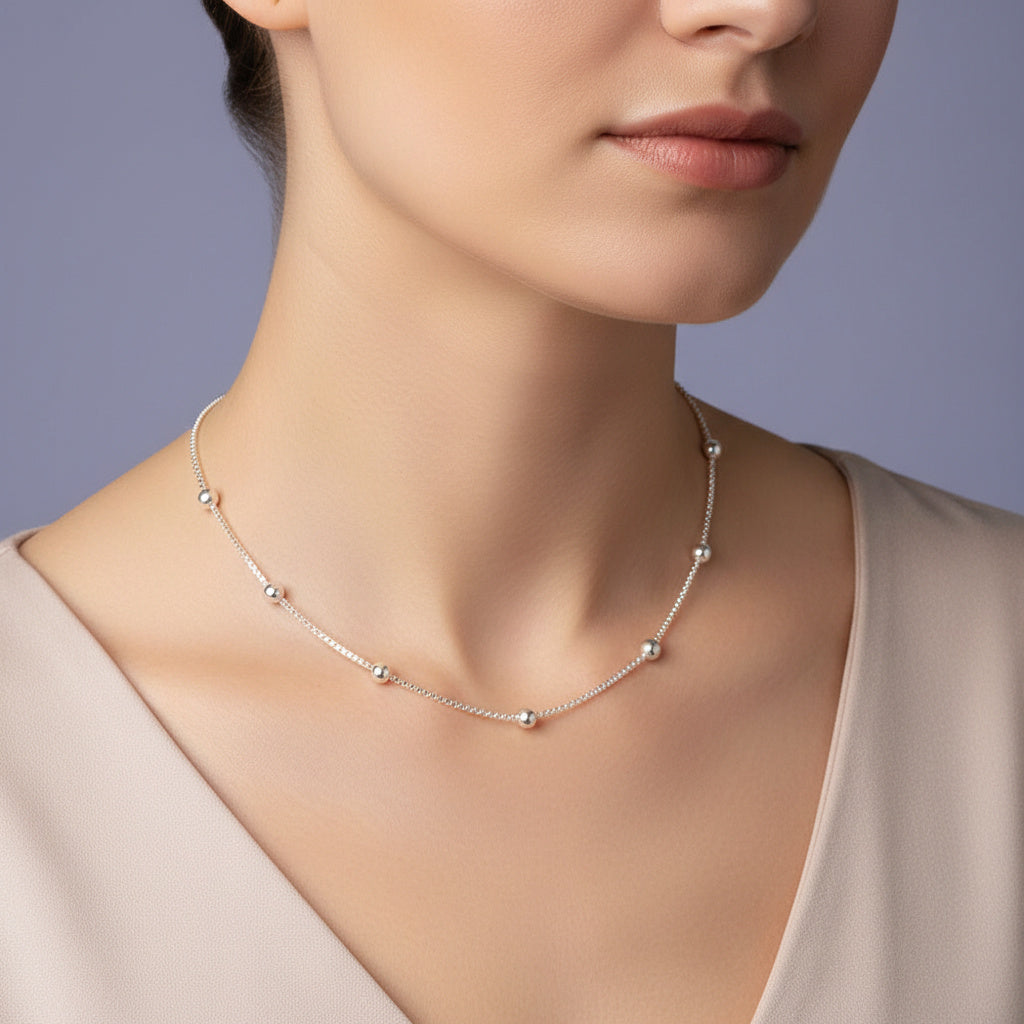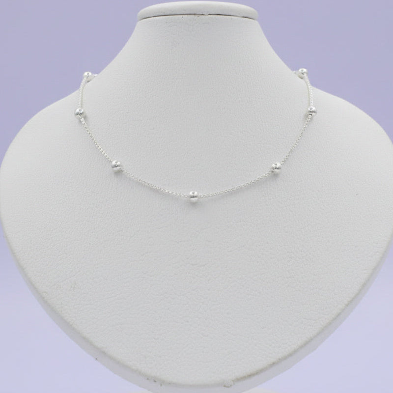 Cadena de Plata .925 de Tejido Caja con Esferas Lisas mod. 1519