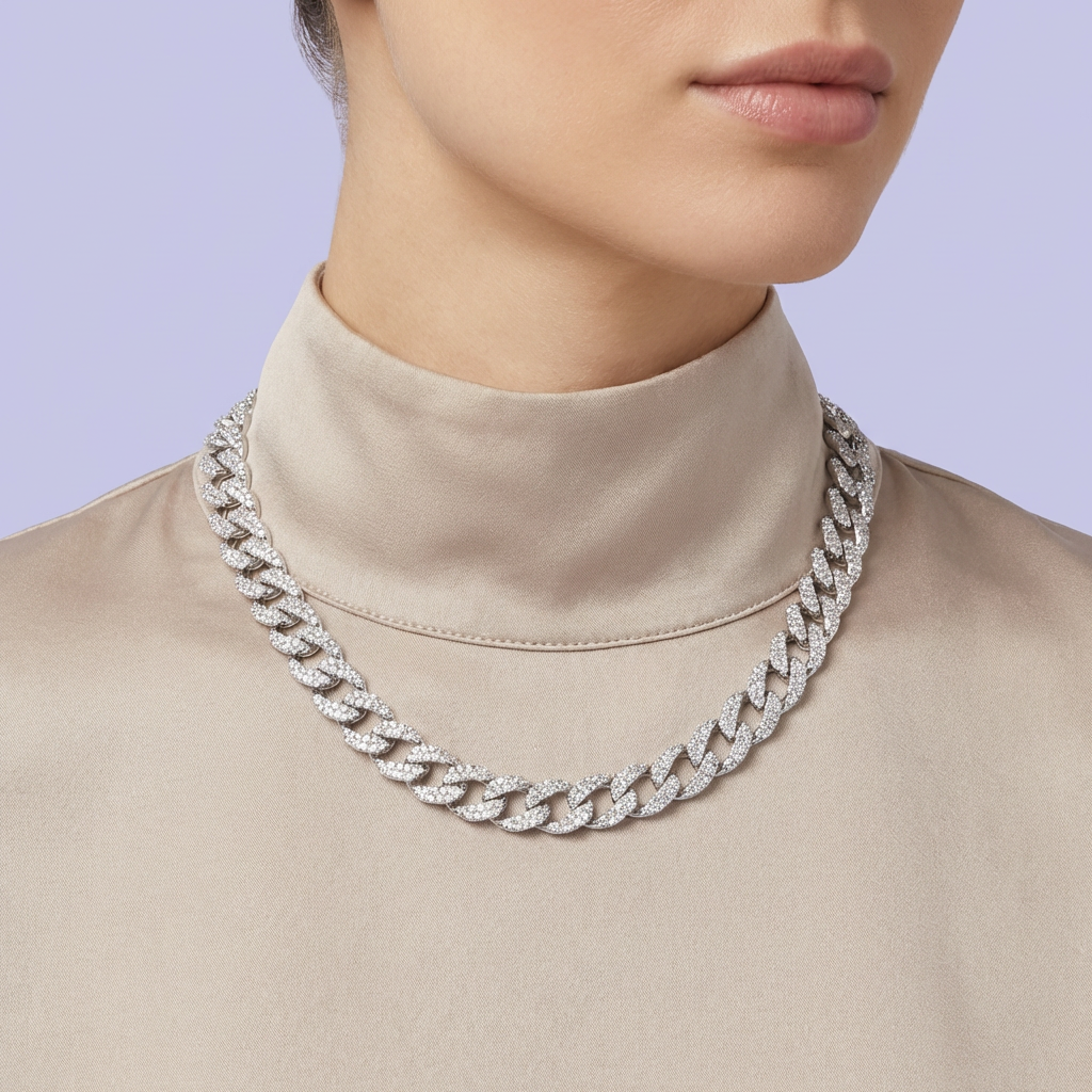 Cadena de Plata .925 Especial de Tejido Barbado Hueco con Broche Fino Incrustada con Zirconias mod. 1891