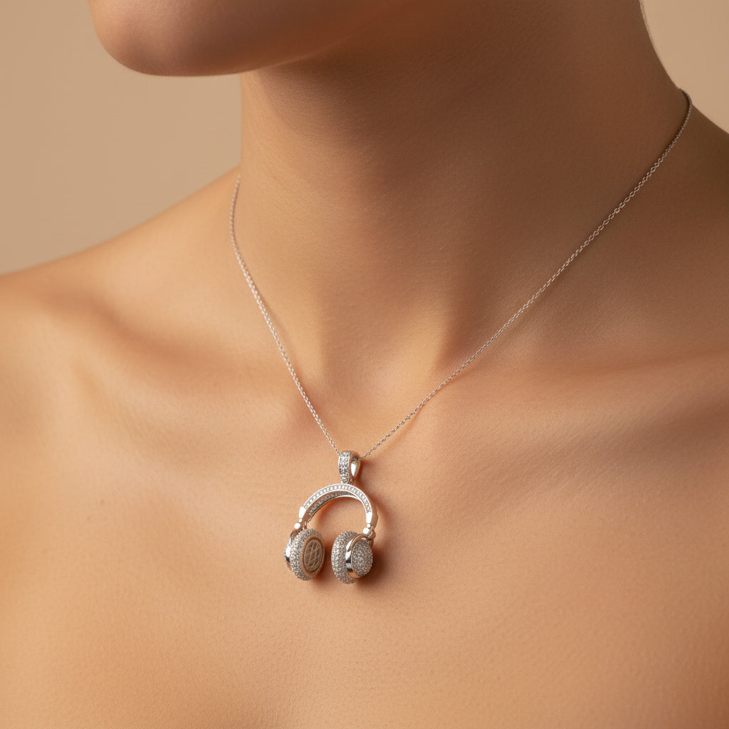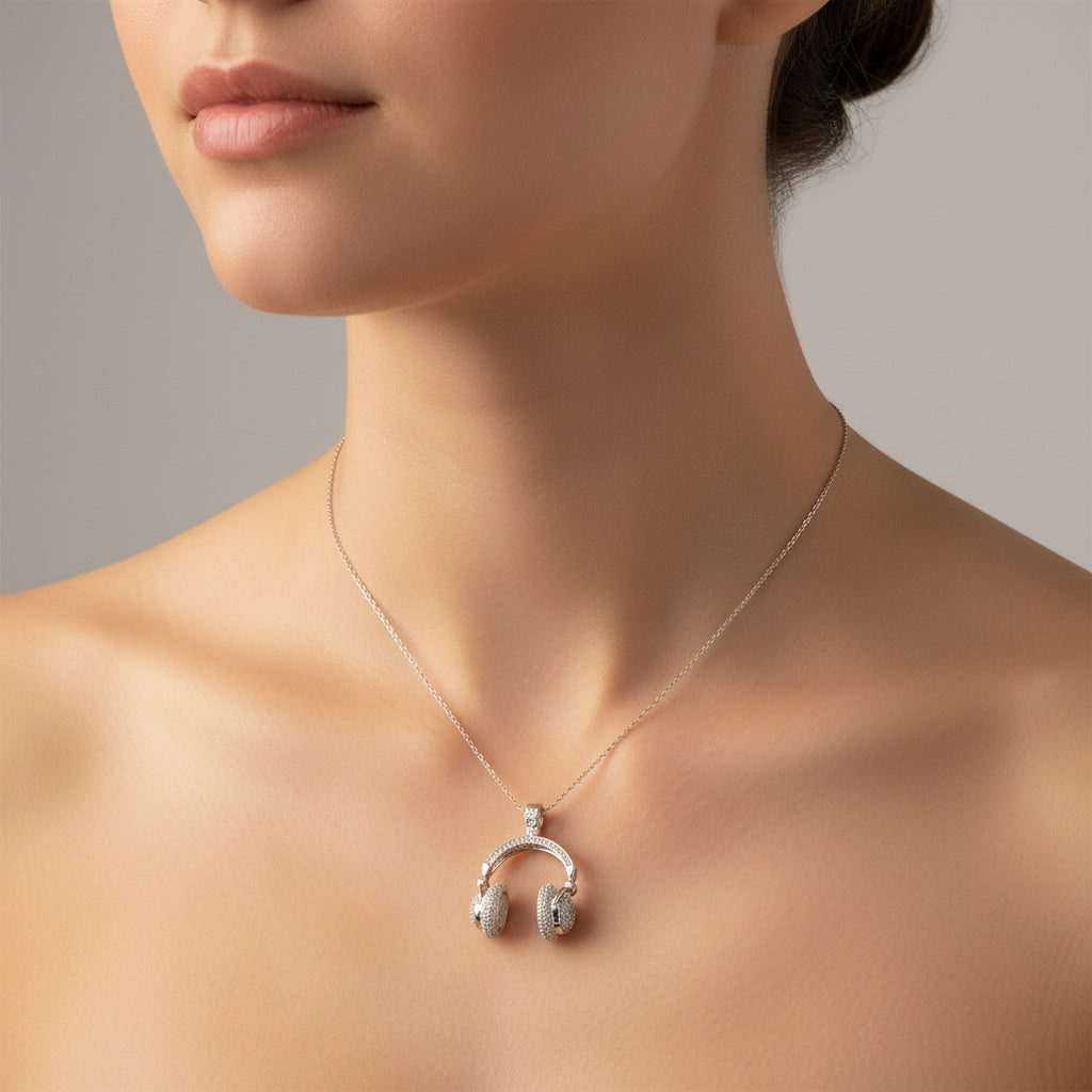 Dije de Plata .925 con Diseño de Audifonos Incrustado de Zirconias mod. 1527