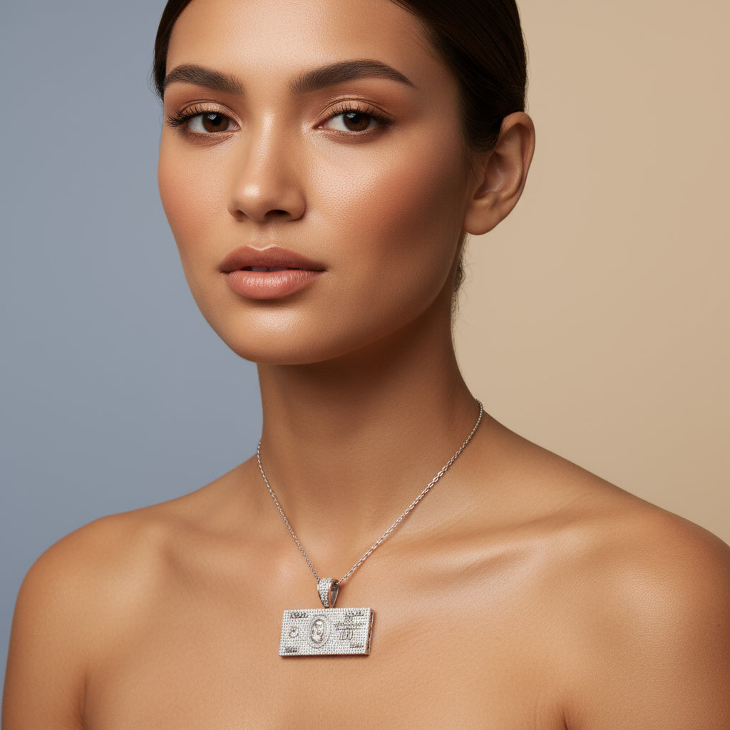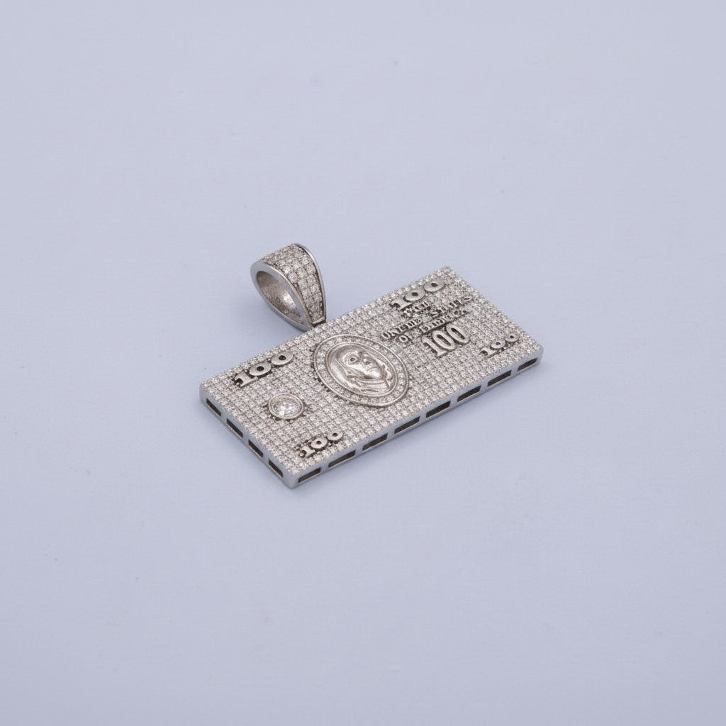 Dije de Plata .925 Especial Billete Dollar 100 con Zirconias Alineadas mod. 1454