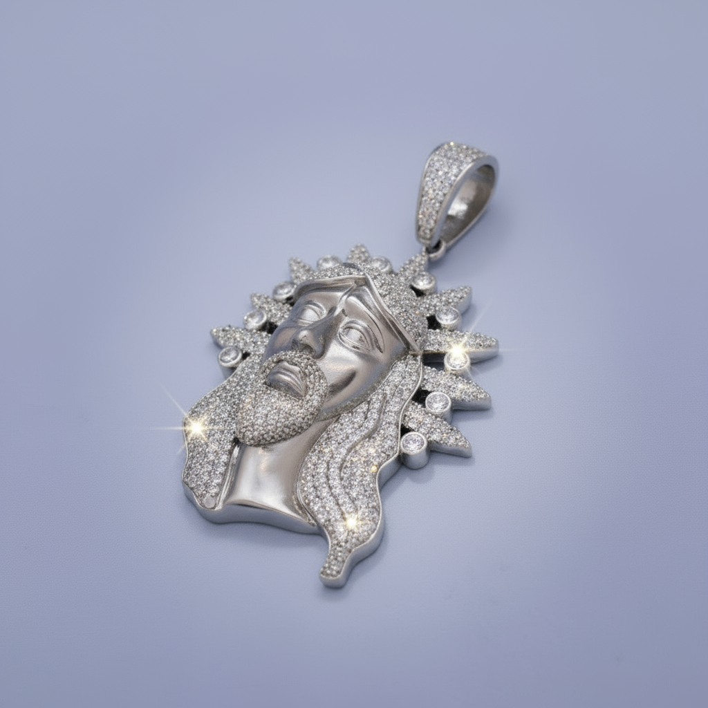 Dije de Plata .925 Especial Divino Rostro Diseño Mate y Brillantes Zirconias mod. 1460