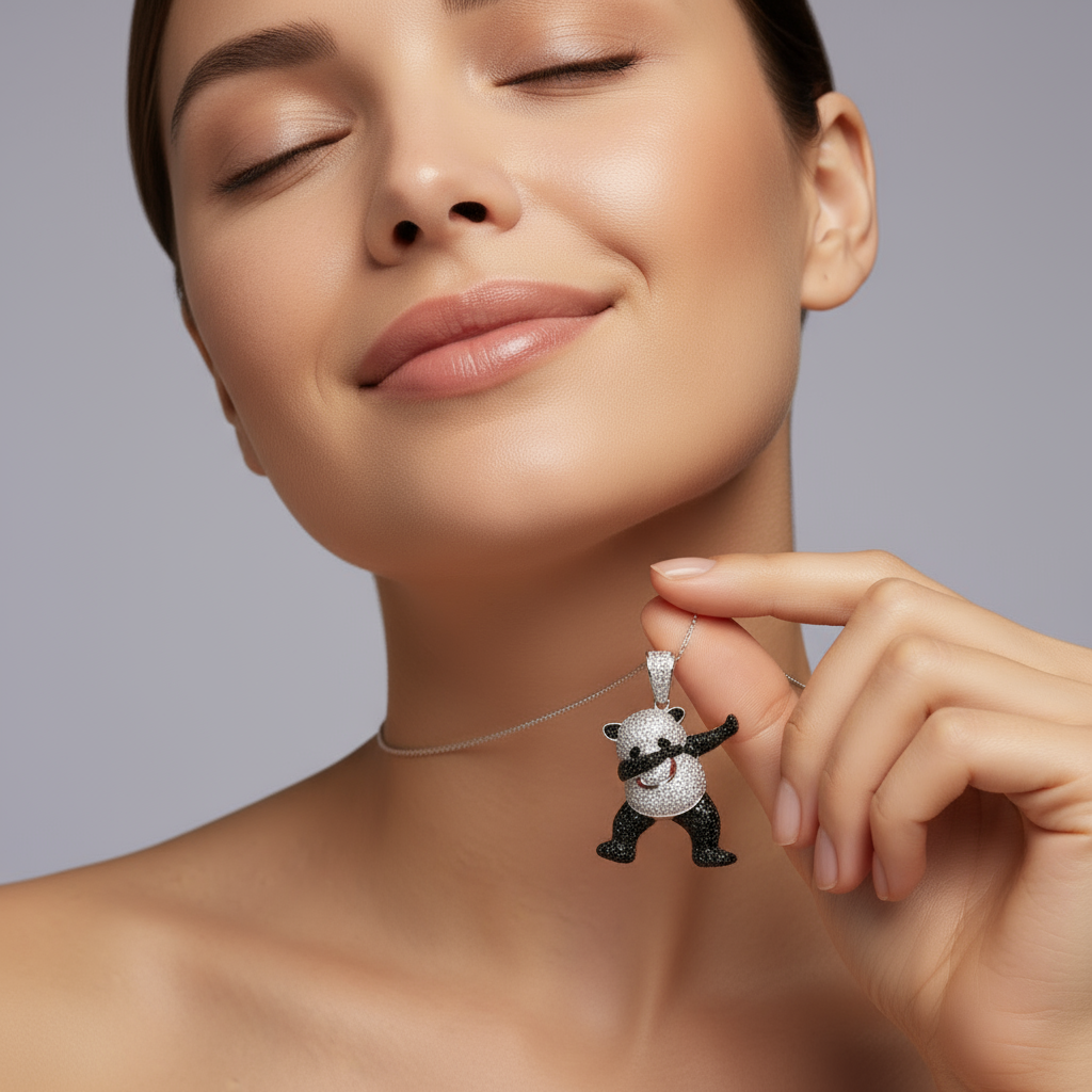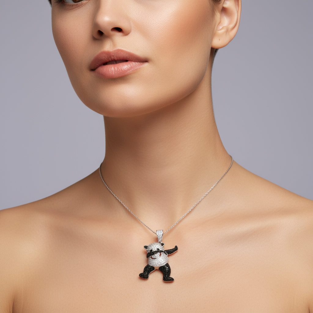 Dije de Plata .925 Especial Oso Panda con Incrustado de Zirconias mod. 1457