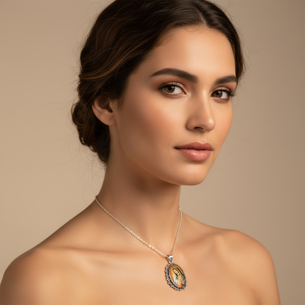 Medalla de Plata .925 con Imagen de la Virgen Guadalupe con Bisel Rodizado mod. 1585