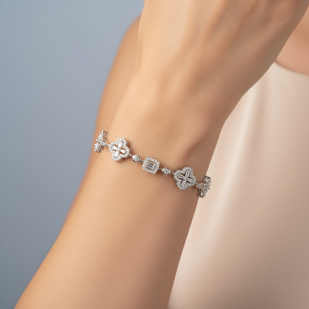 Pulsera de Plata .925 de Diseño de Tréboles y Cuadrados Incrustado de Zirconias mod. 1483