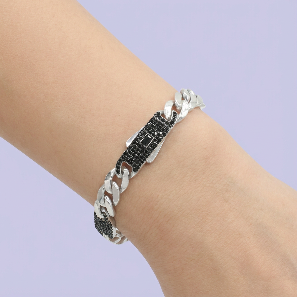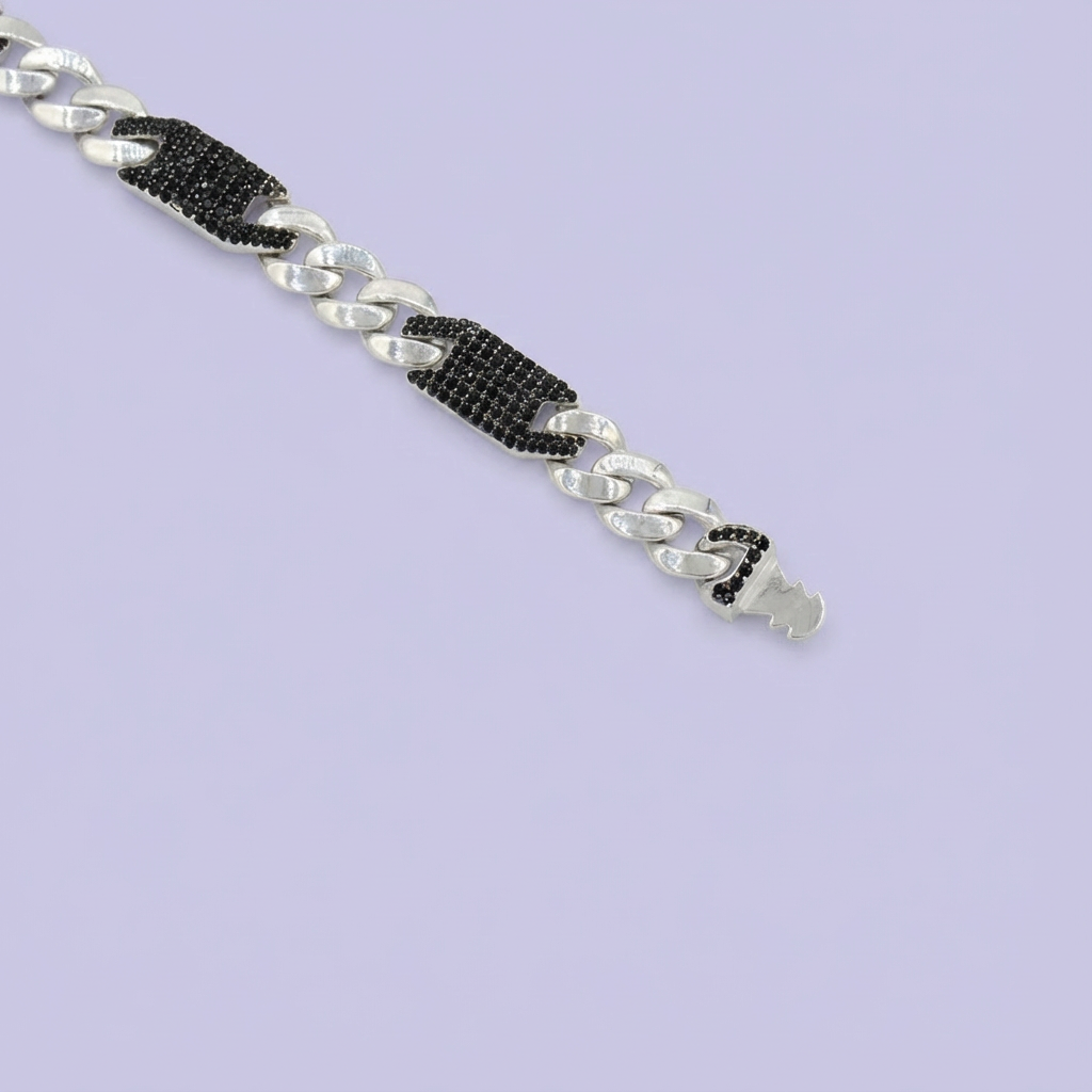 Pulsera de Plata .925 de Tejido 3x1 Especial con Eslabones Grandes Incrustado de Zirconias mod. 1763