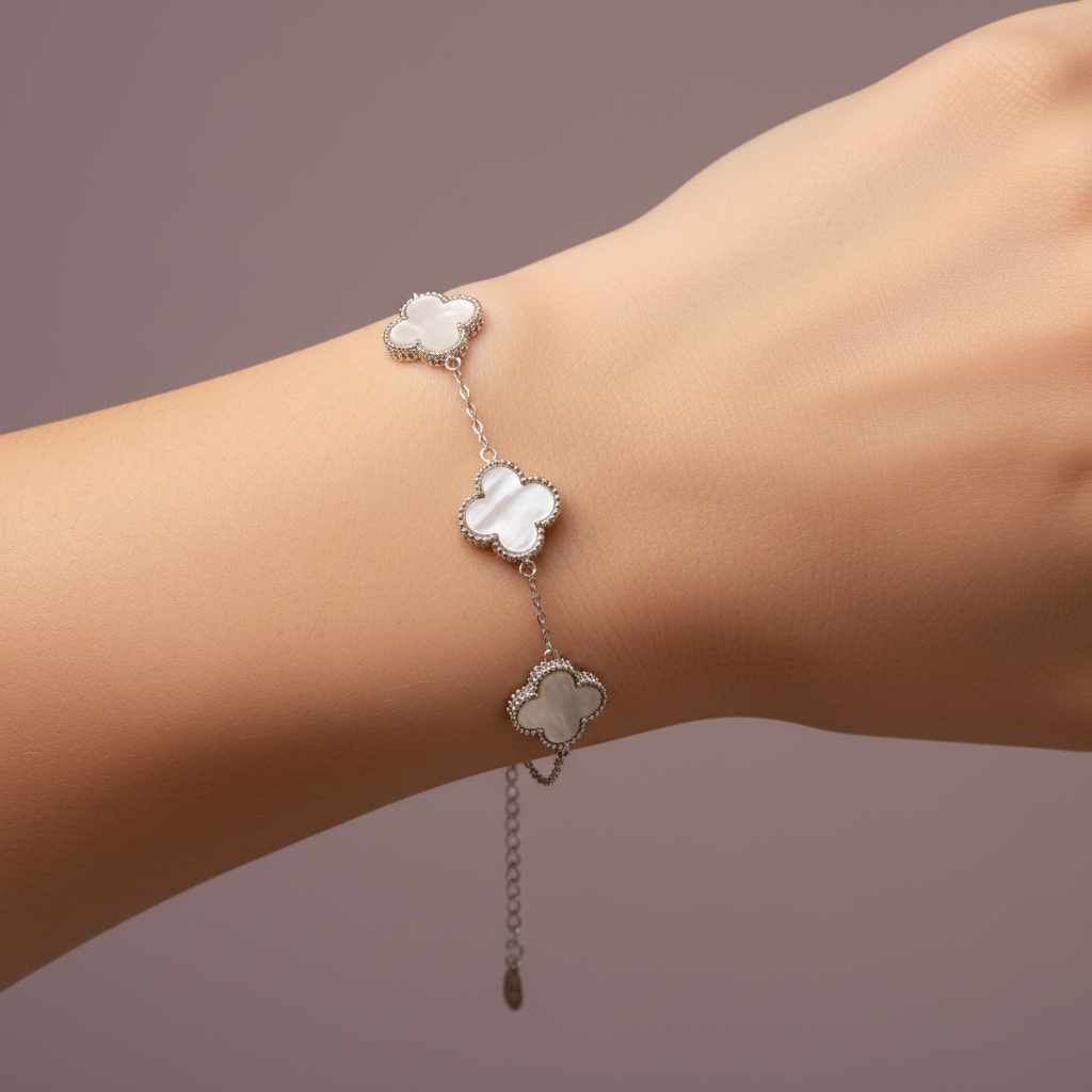 Pulsera de Plata .925 Diseño de Tréboles con Madre Perla mod. 1464