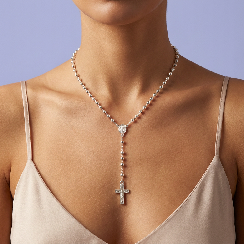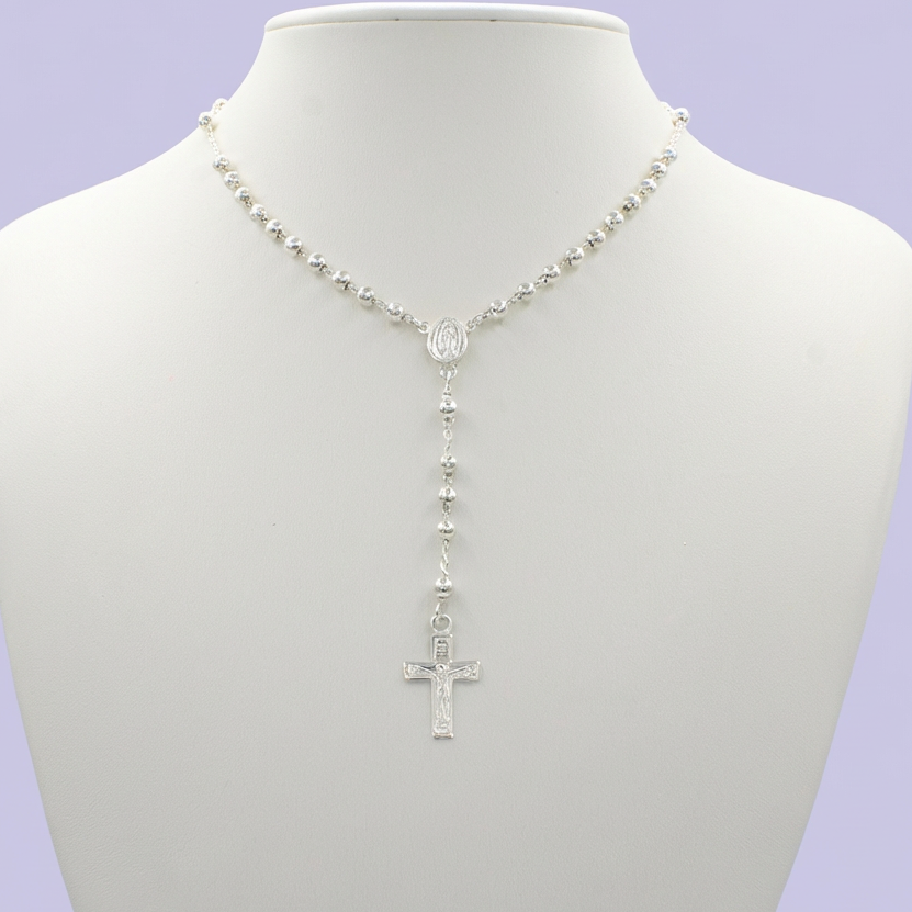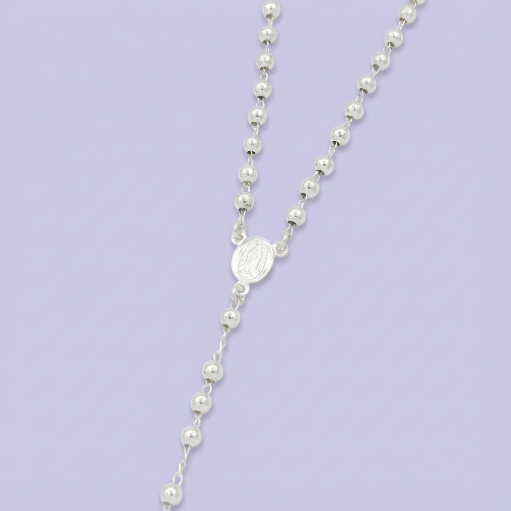 Rosario de Plata .925 de La Virgen de Guadalupe con Cruz Plana mod. 1686